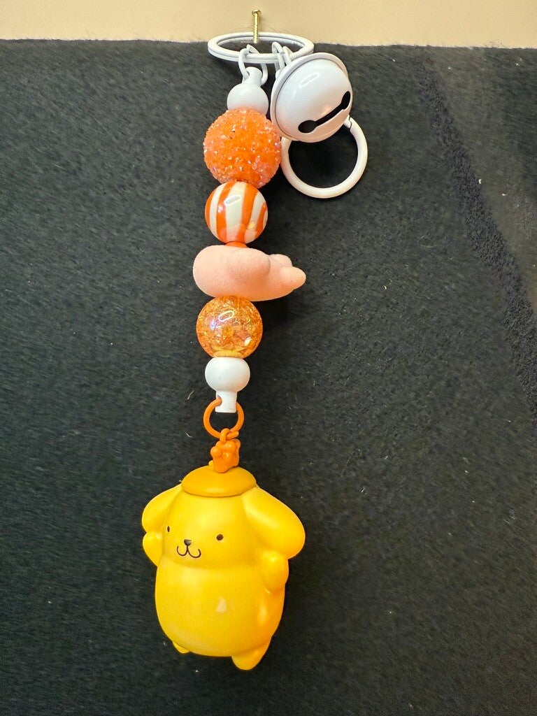 Bring a burst of sunshine wherever you go with this cheerful Pompompurin charm keychain. Featuring a vibrant yellow Pompompurin figure paired with playful orange and white beaded accents, this accessory is equal parts cute and eye-catching. The mix of glitter, striped, and solid beads adds texture and fun, while the mini bell charm gives it a touch of whimsy. Perfect for adding a splash of personality to your keys, bags, or backpacks, this keychain is a delightful reminder to carry a little joy with you every day.