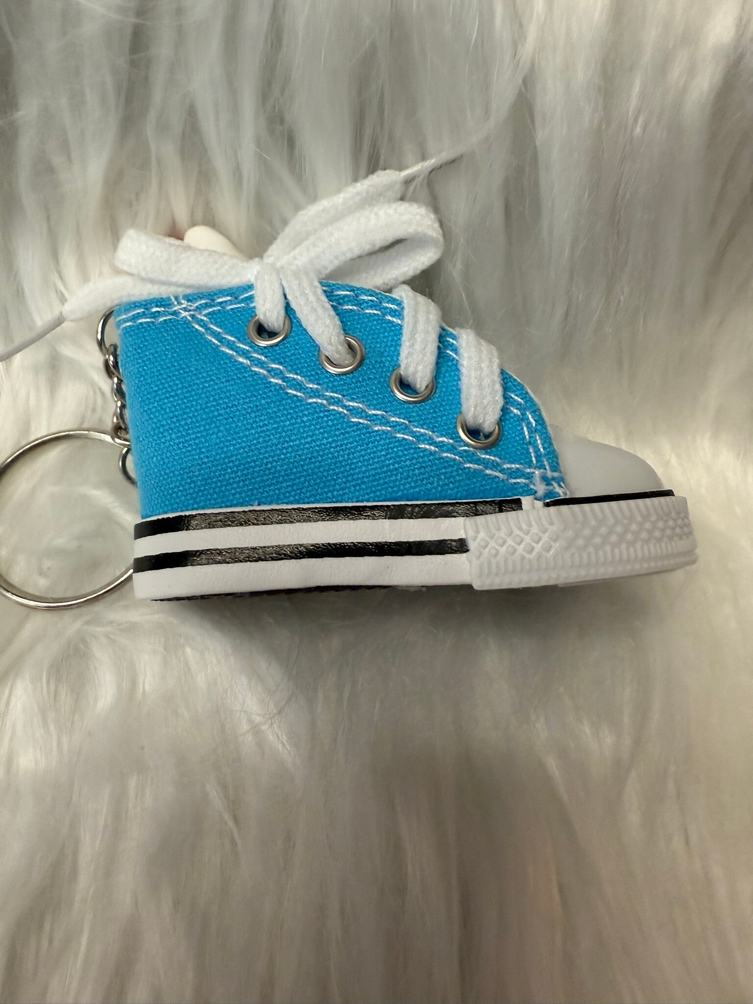 Add a playful pop to your keys or bag with this mini blue canvas Labubu sneaker keychain, complete with white laces and detailed stitching. It’s paired with an adorable “First Day” Labubu character charm for a fun, unique look that’s perfect for gifting or collecting.