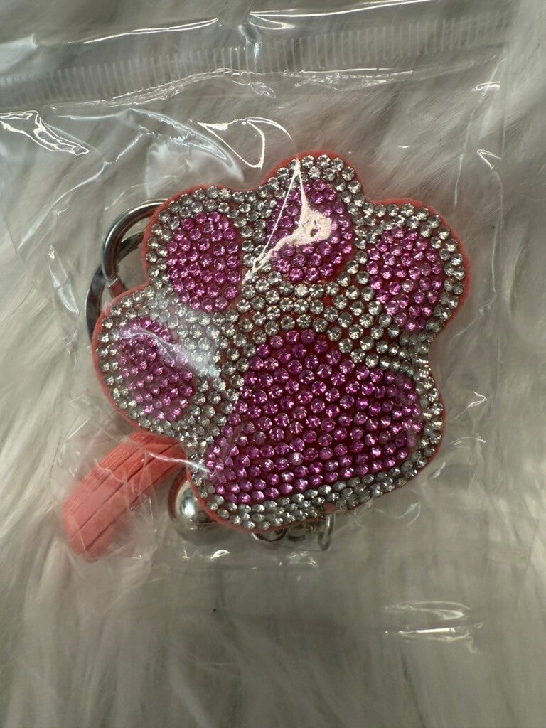 Show your love for furry friends with this glittery pink and silver paw print keychain. A must-have for pet lovers who want to carry a little paw-sitivity everywhere they go.