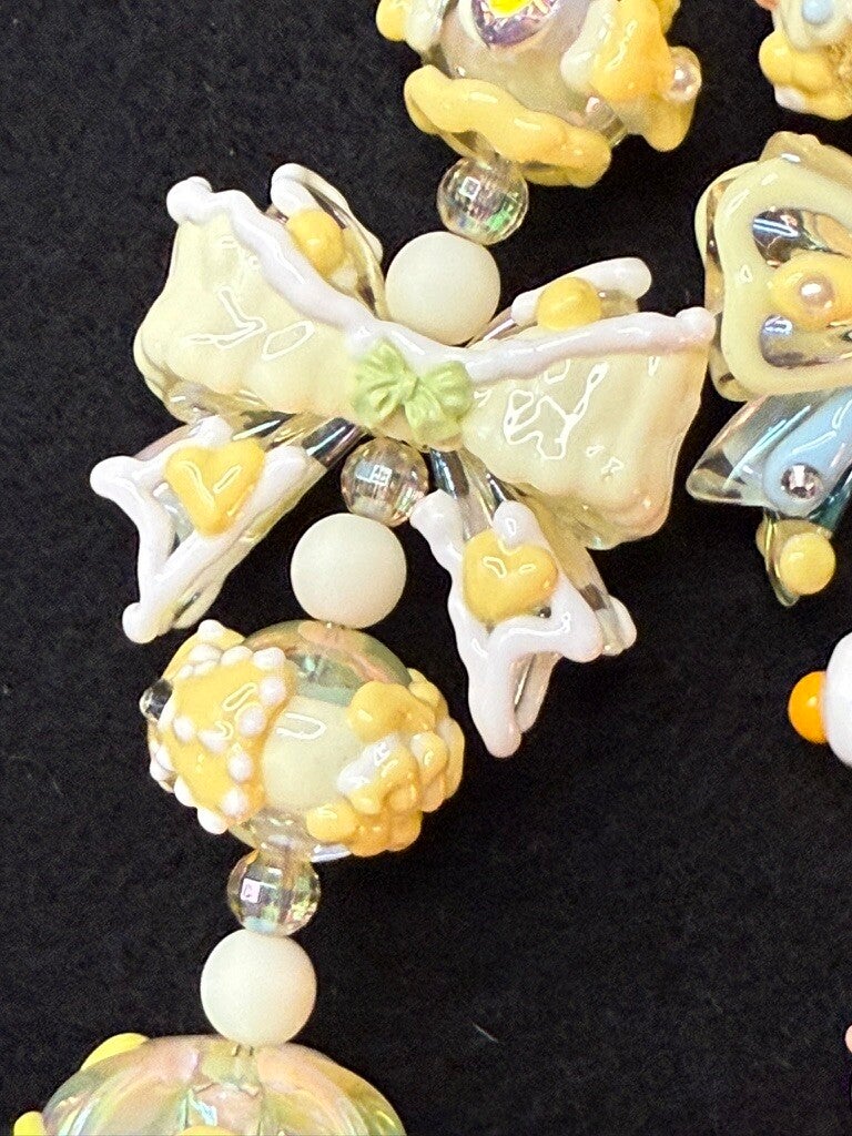 Pastel Lemon Cream Hand-Painted Bead Chain (Bows & Balloon) IDK100067