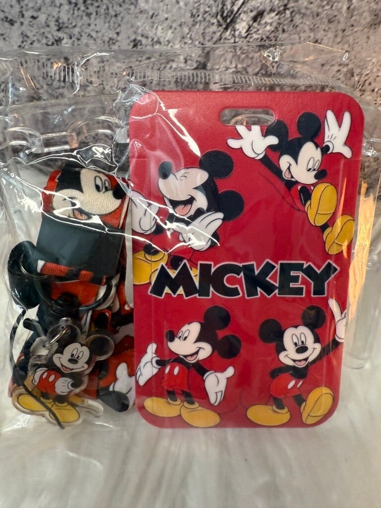Celebrate the timeless charm of Disney’s most iconic character with this bold red Mickey Mouse badge holder and matching lanyard. Featuring multiple cheerful Mickey poses, this set combines fun style with practical use—ideal for carrying ID cards, keys, or passes in classic Disney fashion.