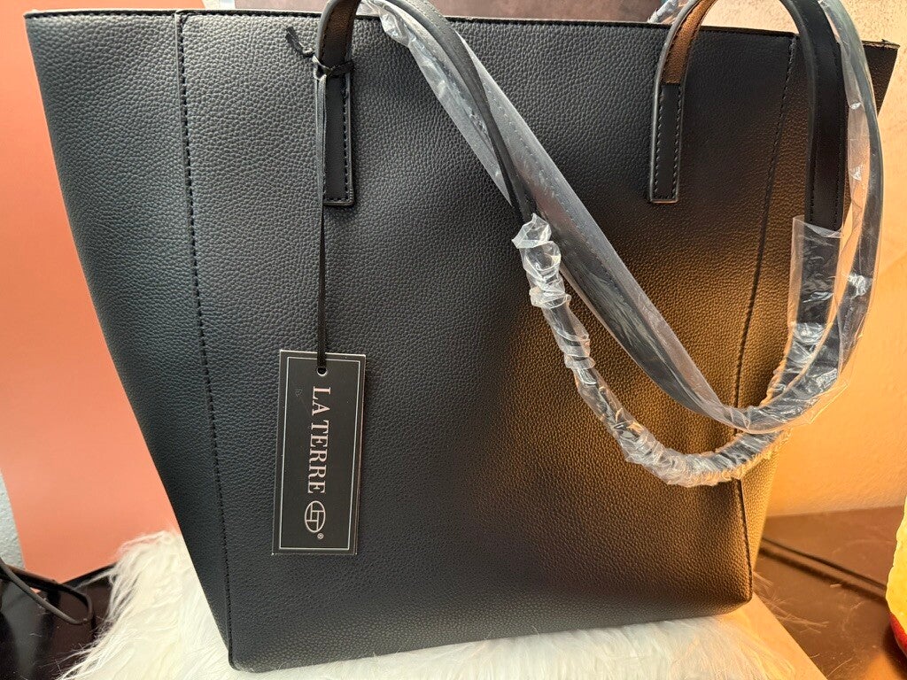The La Terre 3-in-1 Classic Black Tote is the ultimate blend of style, function, and value. Crafted with smooth, vegan leather and detailed with polished gold-tone hardware, this set offers versatile options for every occasion.