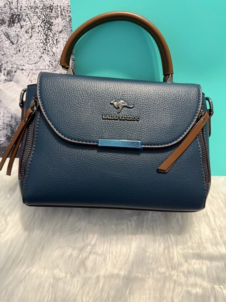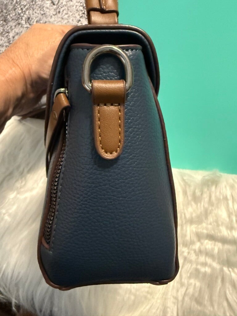 Sleek, structured, and versatile – this navy blue handbag is a timeless piece designed for everyday elegance. Crafted from premium vegan leather, it features a smooth pebbled texture, silver hardware, and rich brown accents for a classic two-tone finish. The bag includes a sturdy top handle and a detachable crossbody strap for multiple styling options. Inside, you’ll find spacious compartments and zipper pockets to keep your essentials neatly organized, while the magnetic flap closure offers both convenience and security. Perfect for work, travel, or elevating your casual look.