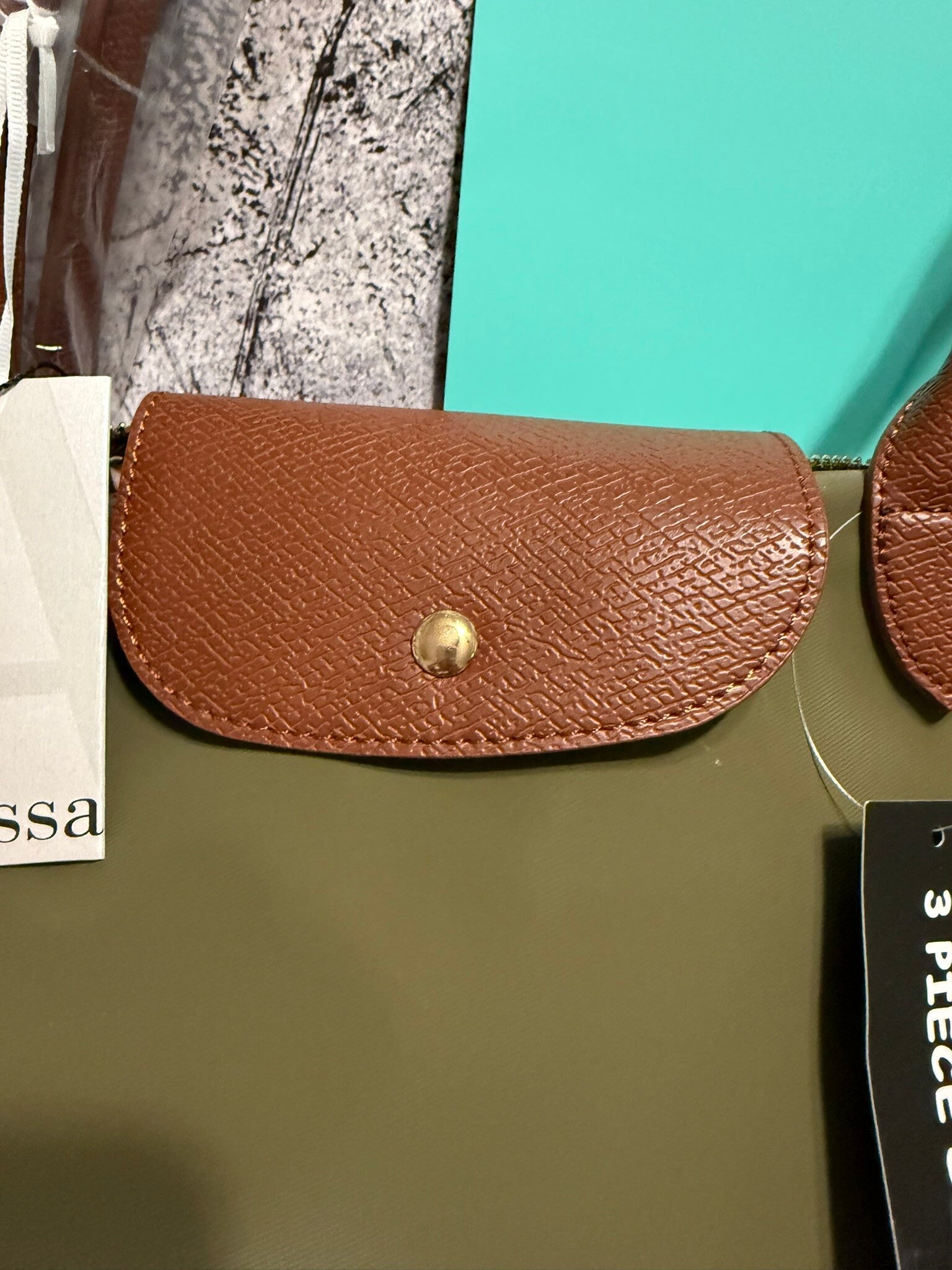 This stylish Alyssa tote bag comes in a versatile olive green with rich brown leather-look accents. Designed with both function and fashion in mind, this 3-piece set includes the spacious tote, matching wallet, and an additional accessory piece for everyday convenience. The roomy interior features a chic striped lining with zippered pocket for organization, while sturdy double handles make it perfect for work, travel, or daily errands. Classic, lightweight, and durable—this set is a must-have for a polished look year-round.