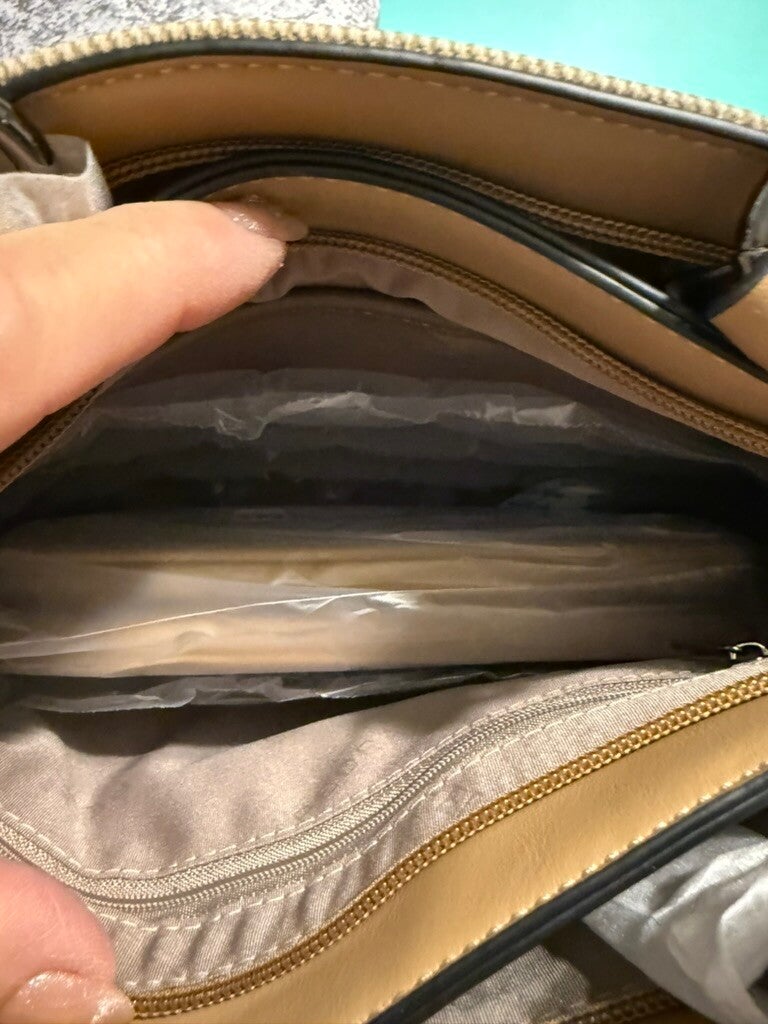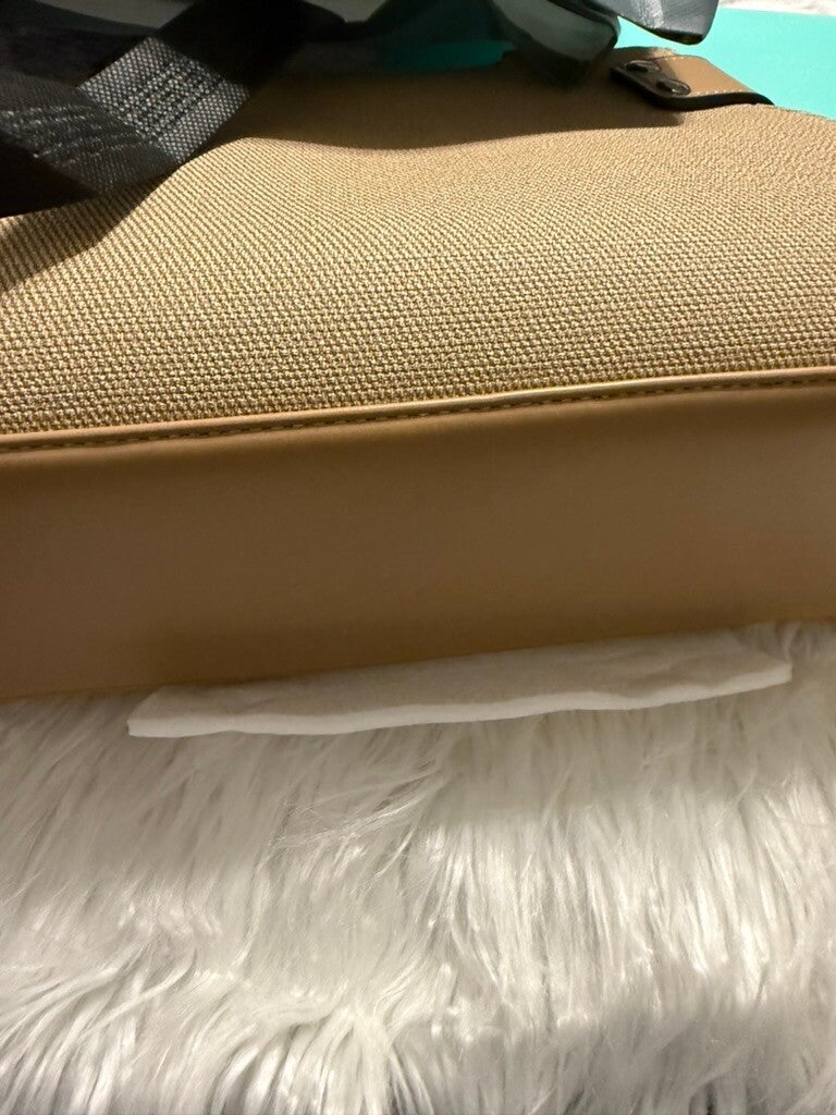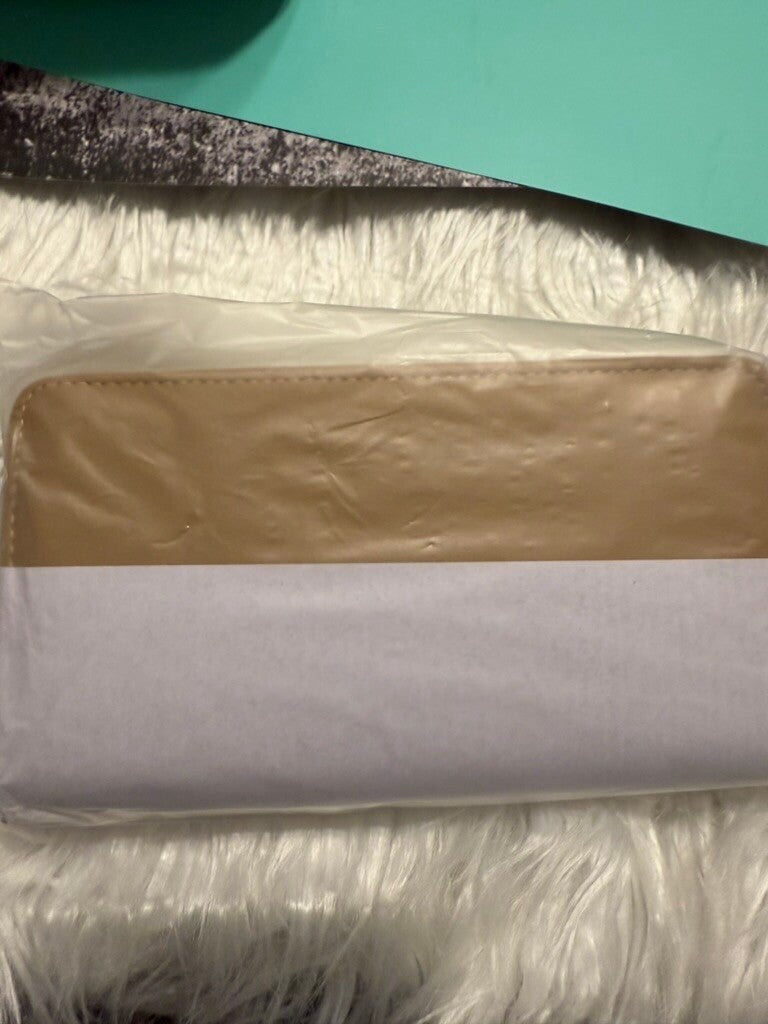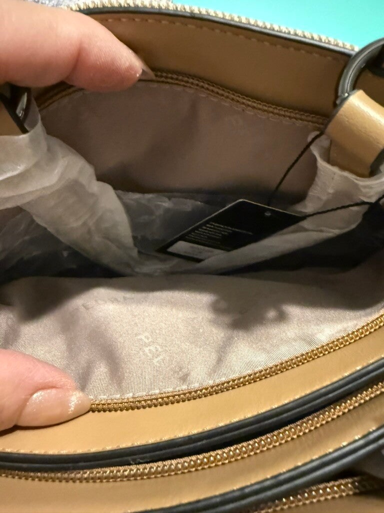 A stylish blend of structure and sophistication, this satchel is crafted from durable beige canvas paired with smooth tan vegan leather accents. The front features a modern belted detail with bold grommets and black hardware for a sleek, fashion-forward touch. Its spacious interior includes multiple compartments and zippered pockets to keep your essentials neatly organized. Comes with a matching wallet for a perfectly coordinated look. Ideal for work, travel, or everyday elegance.