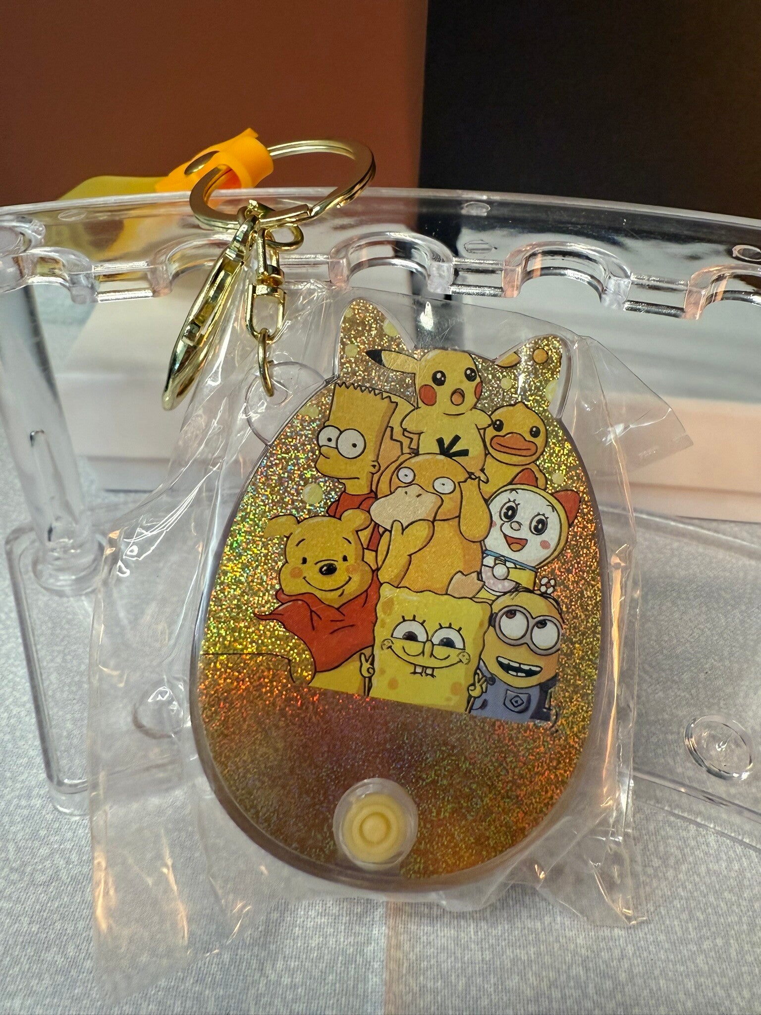 Brighten up your day with this playful Cartoon Mix Pop-It Keychain! Featuring a glittery gold finish and a collage of fan-favorite cartoon characters, this keychain is as eye-catching as it is entertaining. The built-in bubble fidget design makes it a fun stress reliever, while the secure gold keyring lets you easily attach it to your keys, purse, or backpack. Lightweight yet durable, this piece doubles as a conversation starter and a handy accessory. Perfect for kids, teens, or anyone who loves quirky, colorful styles!