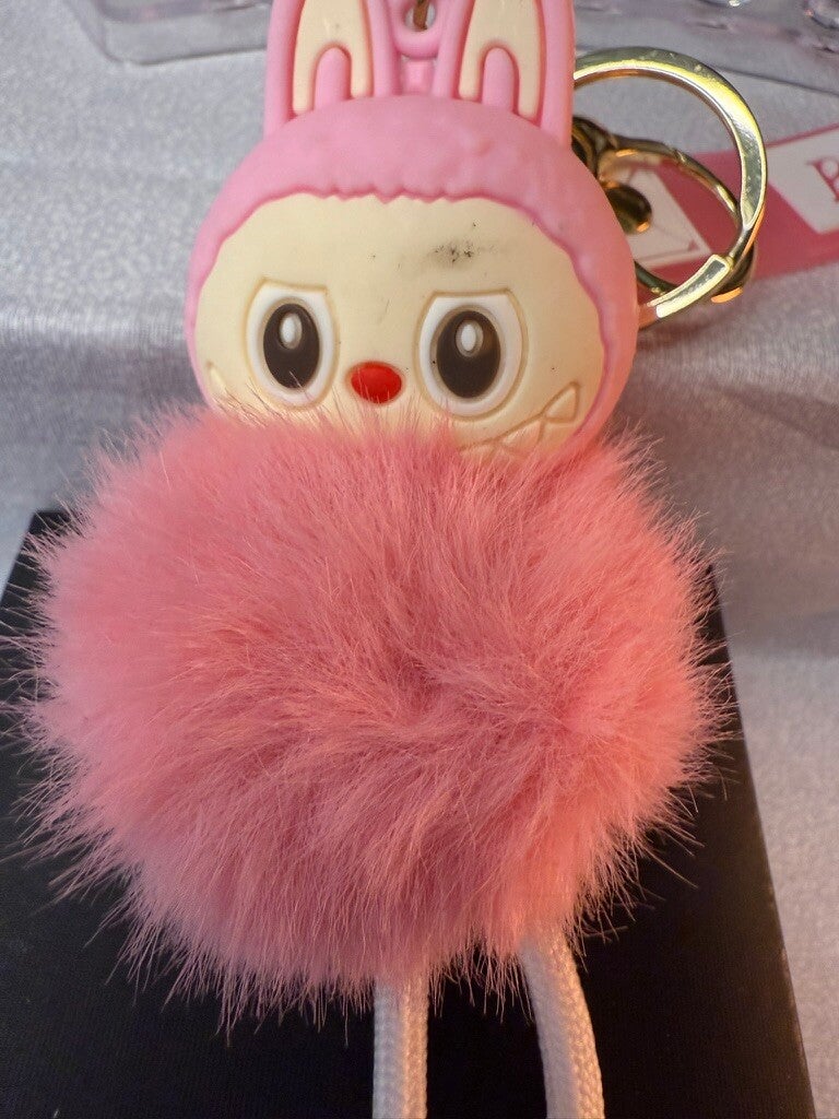 Pink Labubu Furry Pom-Pom Keychain with Boots IDK100130