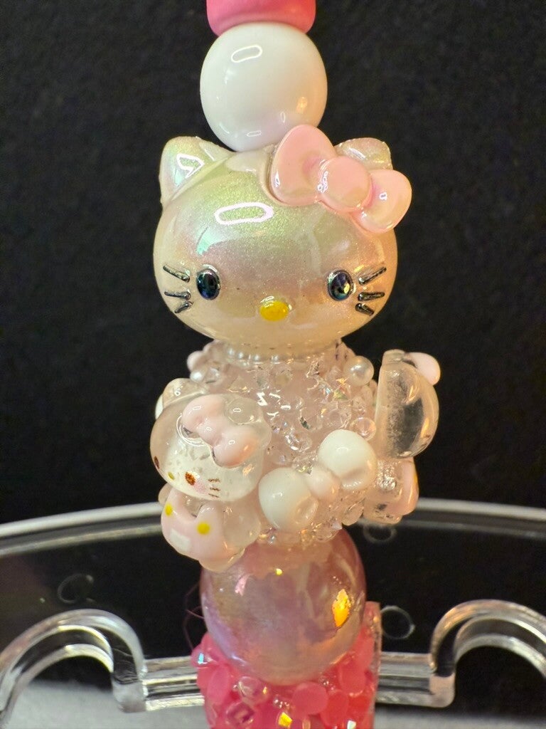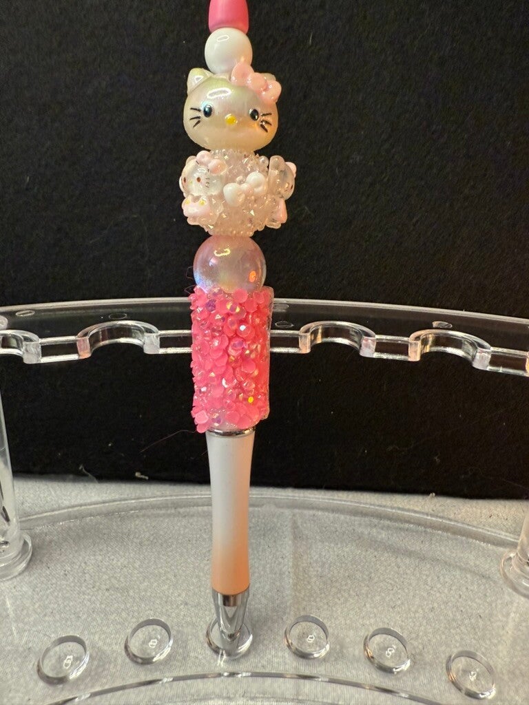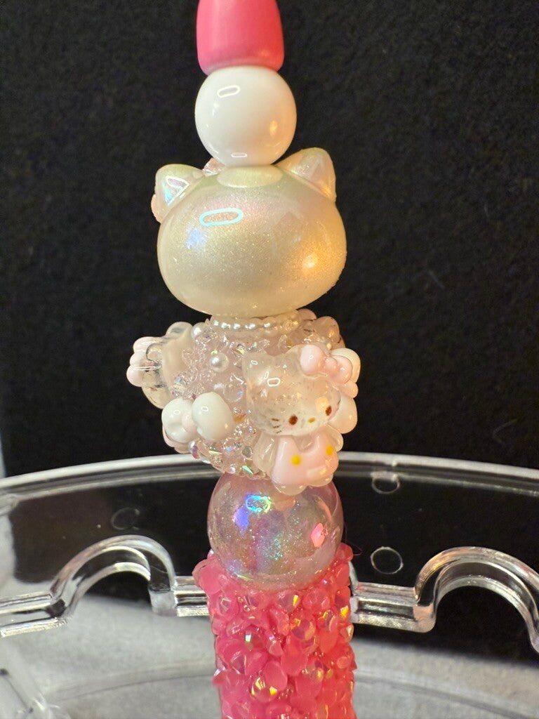 💖 Add some cuteness and sparkle to your desk with this one-of-a-kind Hello Kitty pen! Featuring a dazzling Hello Kitty topper surrounded by shimmering crystal beads, iridescent pink accents, and sparkling rhinestones, this pen is both stylish and functional. Perfect for journaling, note-taking, or as a gift for any Hello Kitty lover!