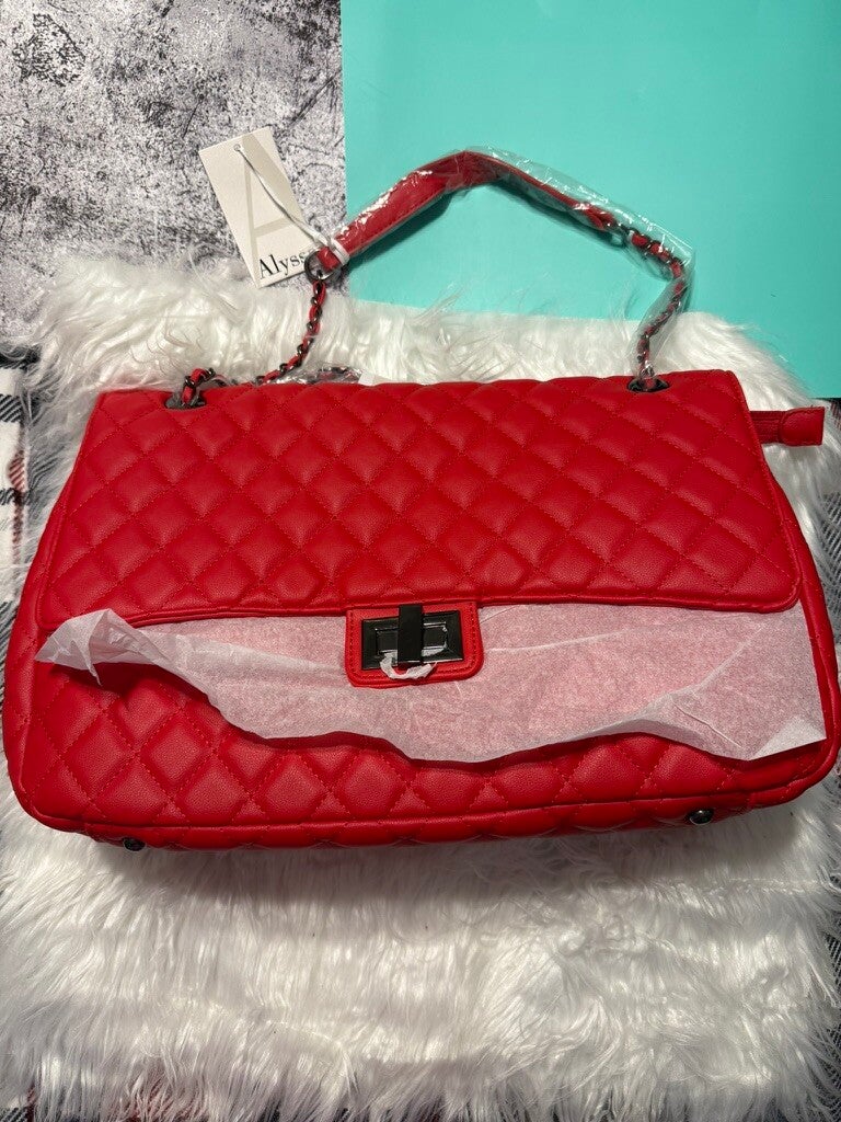 Turn heads with this bold and beautiful red quilted messenger bag, the perfect statement piece for work, school, or everyday chic. Featuring a luxurious quilted design, sturdy chain-wrapped handles, and a secure turn-lock closure, this spacious bag combines elegance with practicality. The roomy interior includes multiple compartments with a stylish animal print lining, making it as functional as it is fashionable. Whether carried by hand or over the shoulder, this versatile bag adds instant sophistication to any outfit.