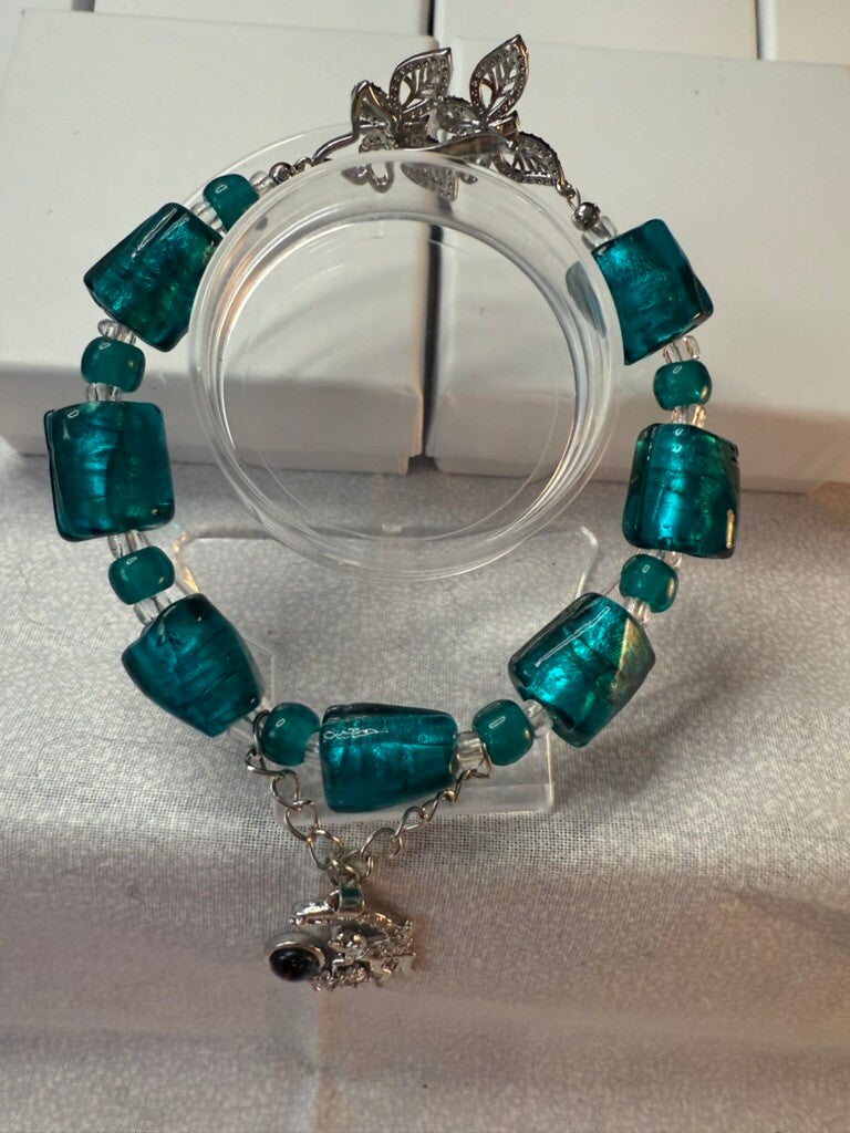 Unicorn Dreams Teal Glass Closure Bracelet – 7in with Butterfly Clasp IDB100163