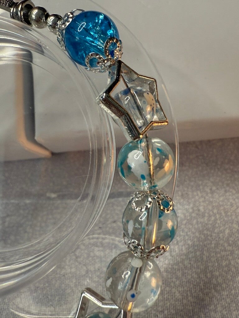 Celestial Infinity Star Bracelet – 7in Blue Glass with Rhinestone Clasp IDB100166