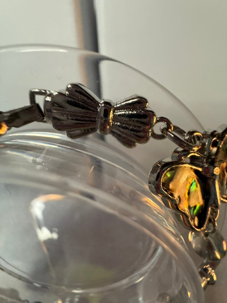 Iridescent Butterfly Bracelet – 7in Abalone & Silver with Bow Clasp IDB100168