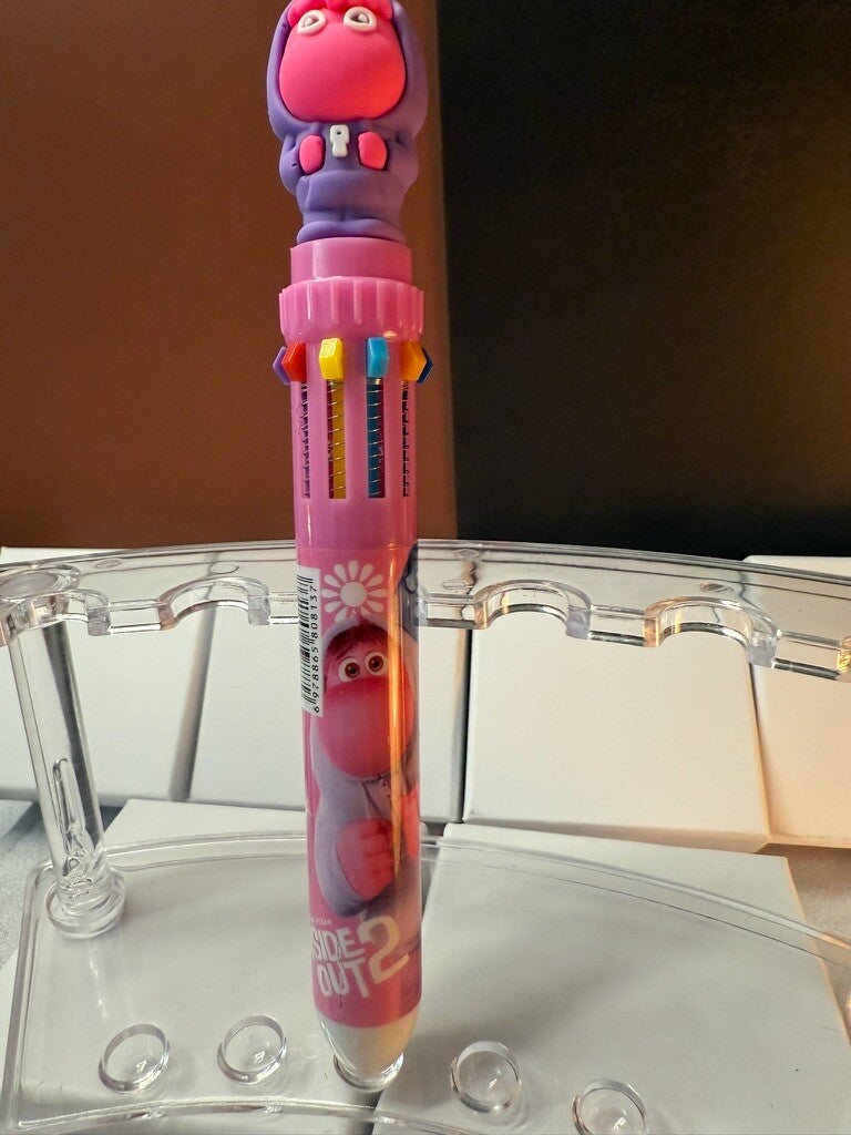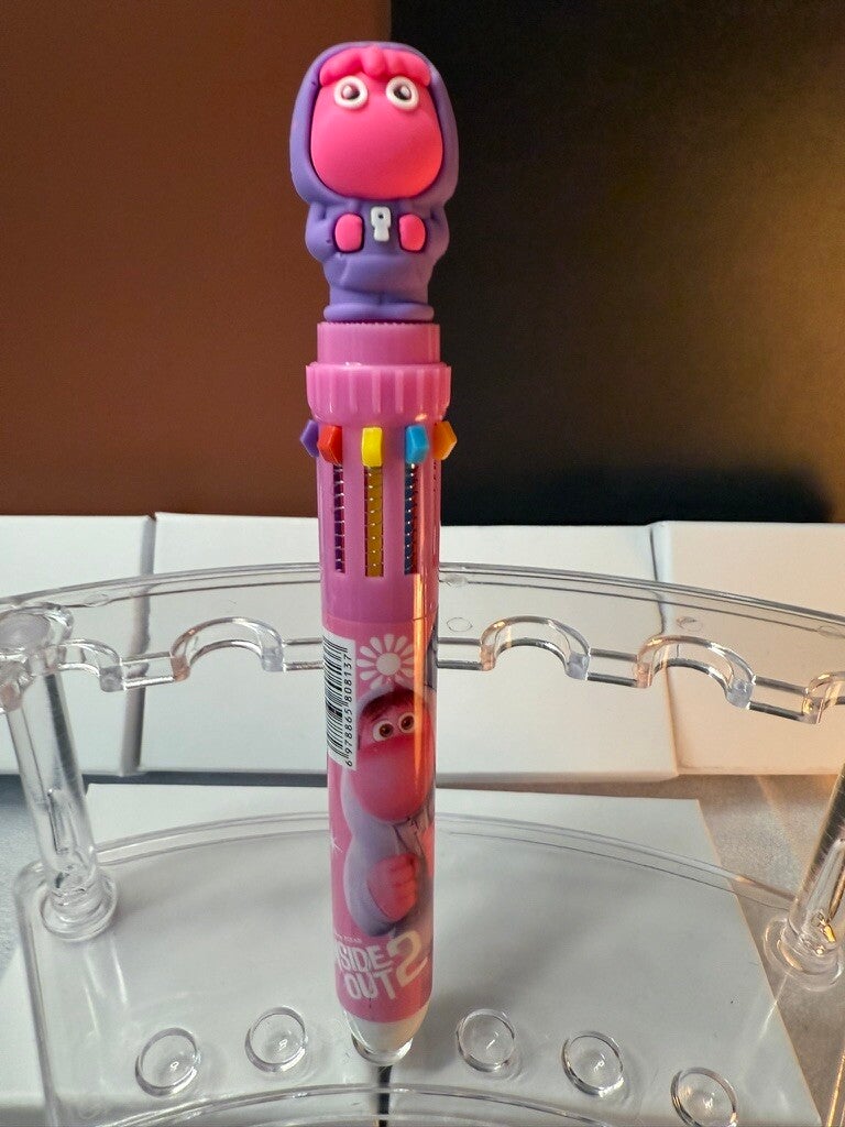 Bring some Pixar fun to your writing with this Inside Out 2 multi-color pen featuring Anxiety, the newest character from the movie. The pen is topped with a 3D soft-rubber figure of Anxiety in her purple hoodie, making it both adorable and collectible. With multiple ink colors in one pen, it’s practical for school, journaling, or everyday use while showing off your favorite animated character. A must-have for Inside Out fans, kids, and collectors alike!