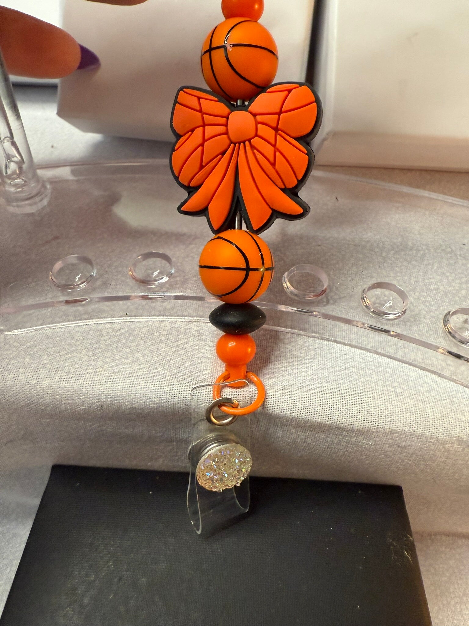 🏀 Basketball Bow Beaded Badge Reel | Handmade ID Holder with Sports Flair IDG100003