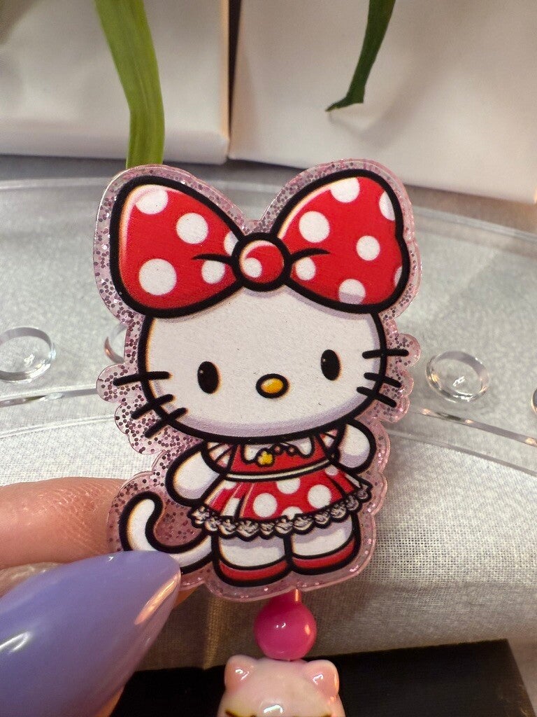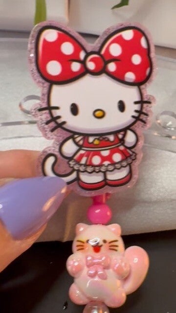 Hello Kitty Spinner Badge Reel with Beaded Charm – Cute & Functional ID Holder IDG100020