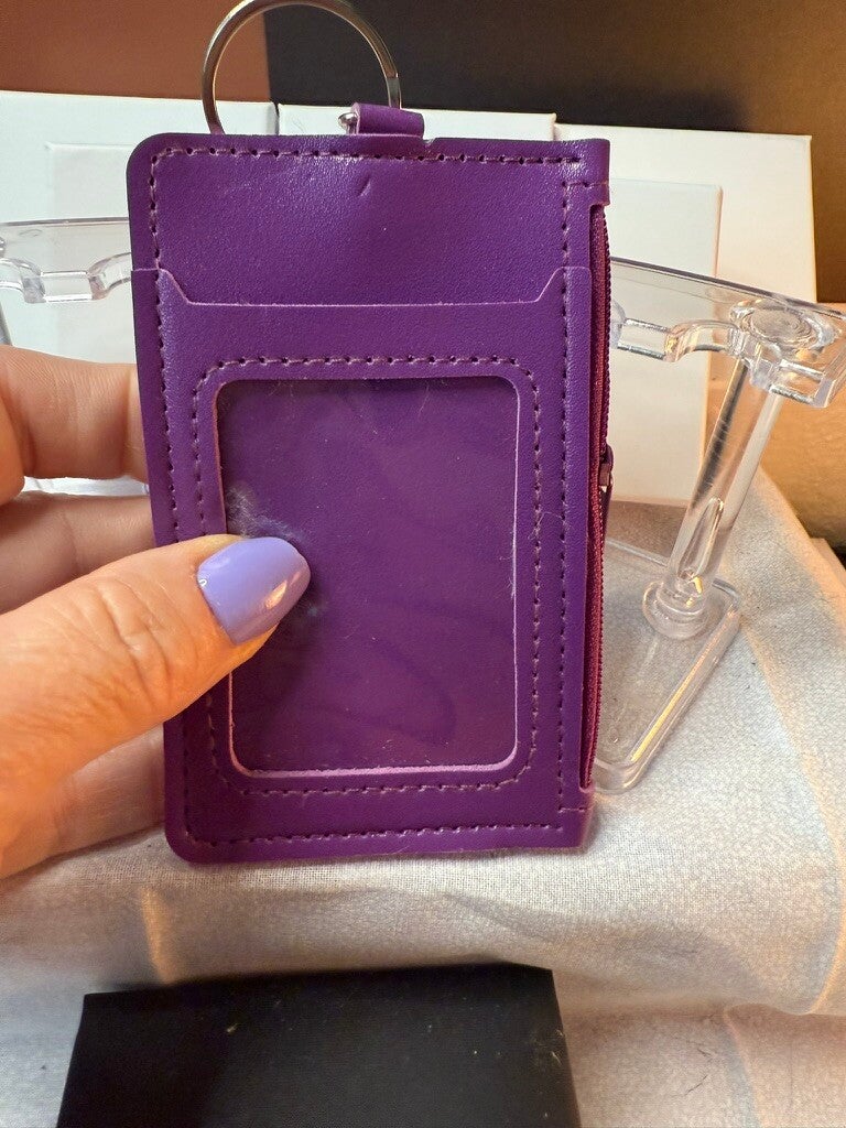 Stay organized in playful style with this Purple Labubu Card Holder, designed with a cute Labubu character patch and bold "Yes!" text on the front. Made from durable faux leather, it features multiple slots for cards, an ID window on the back for quick access, and a zippered side pocket for cash or coins. The attached braided wristlet keychain makes it easy to carry on the go, keeping your essentials secure and accessible. Perfect for students, commuters, or anyone who loves adding a pop of fun to their everyday accessories.