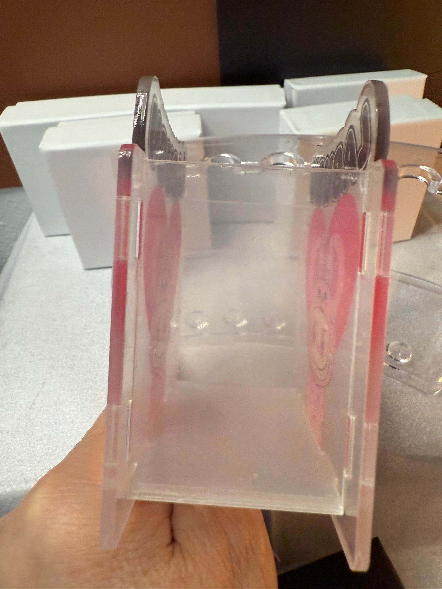 Clear, sturdy plastic box with colorful kawaii animal artwork.