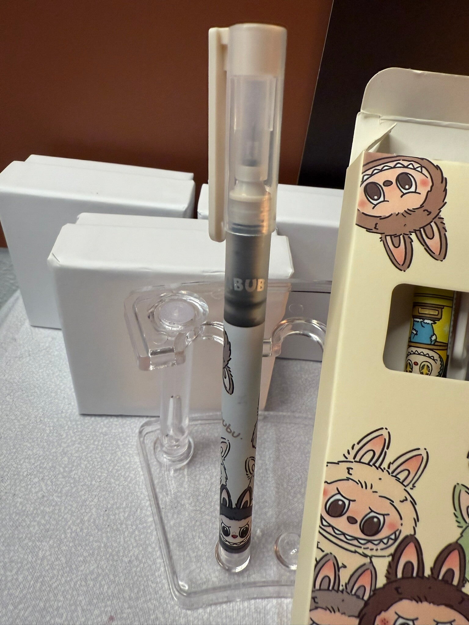 Make writing more fun with this adorable Labubu 4-pack pen set! Each pen features black ink with a smooth 0.5mm fine tip, perfect for journaling, note-taking, or schoolwork. The pens come decorated with playful Labubu characters, making them a must-have for fans and stationery lovers alike. Packaged in a cute character box, this set also makes a thoughtful gift for students, co-workers, or collectors.
