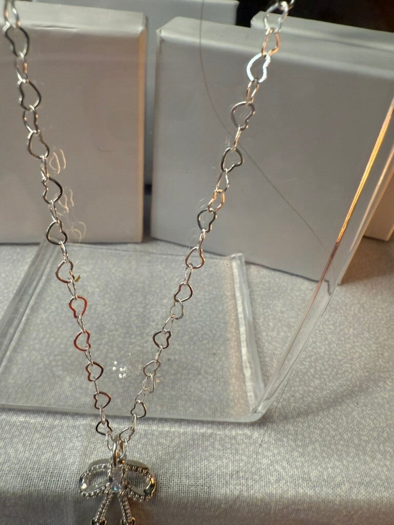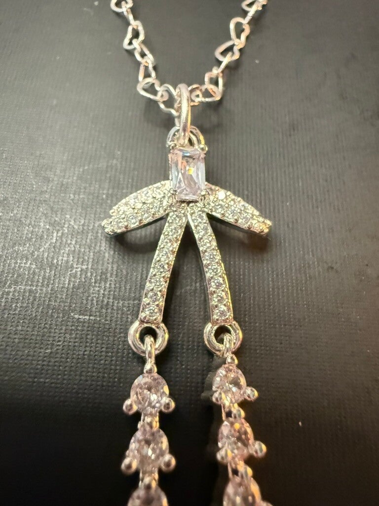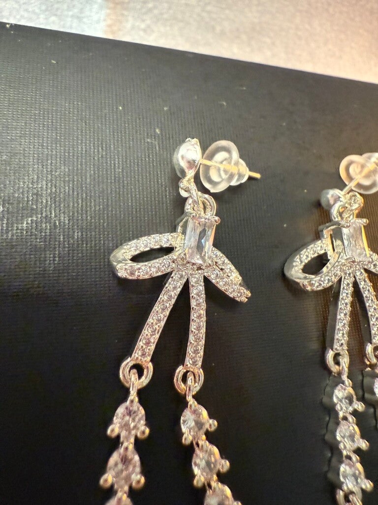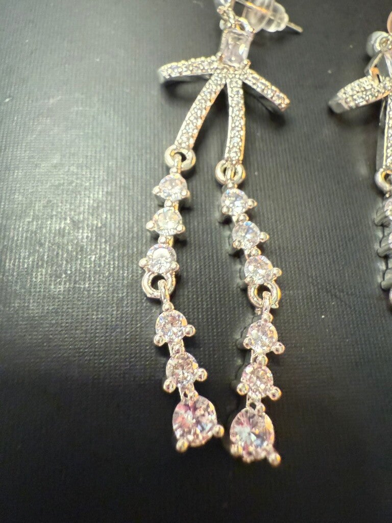 Radiant Elegance Lazy Bow Set – Sterling Silver Crystal Drop Necklace & Earrings IDJ100005
