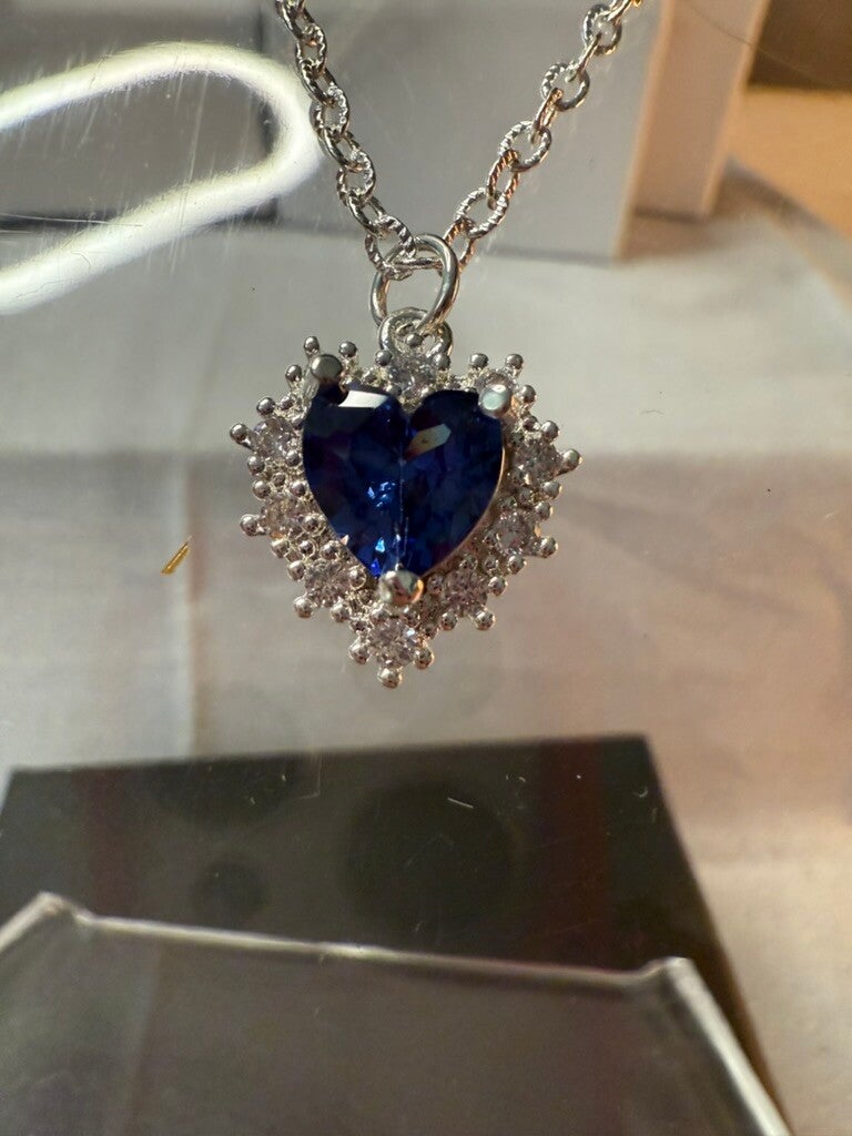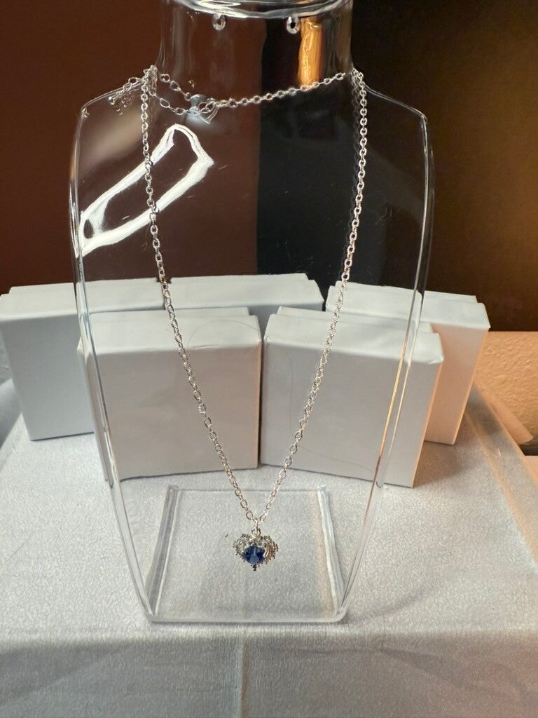 Timeless beauty meets refined sparkle in our Sapphire Heart Elegance Set. Crafted from genuine sterling silver, this radiant duo features a heart-shaped sapphire-blue crystal surrounded by a halo of shimmering clear stones. The 18-inch chain necklace pairs perfectly with matching drop earrings, creating a look that’s both classic and captivating.