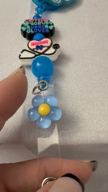 Bring personality and positivity to every shift with our Nurse Life Beaded Badge Reel! This fun and functional piece features vibrant nurse-themed charms that proudly say Coffee, Scrubs & Rubber Gloves — the essentials of nurse life! Accented with bright blue beads and topped off with a whimsical flower spinner charm, this badge reel adds movement, sparkle, and a smile to your workday.
