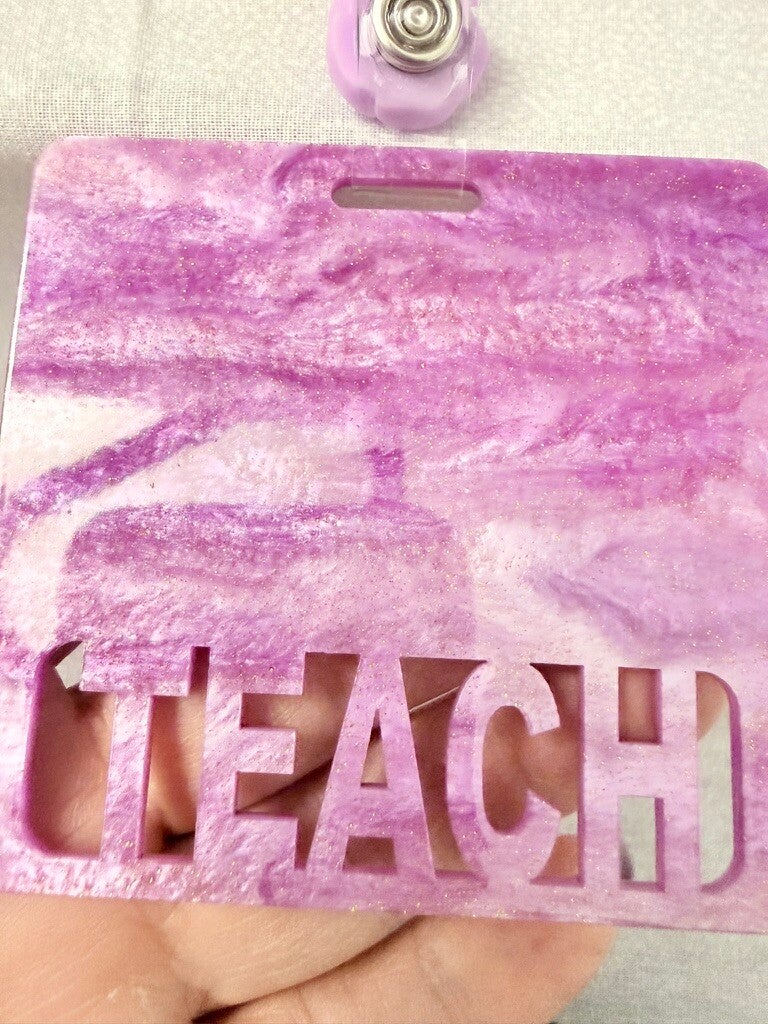 Each reel is crafted to stand out while staying functional and durable for daily wear — perfect for teachers, aides, and anyone who loves a little handmade flair in their professional look.