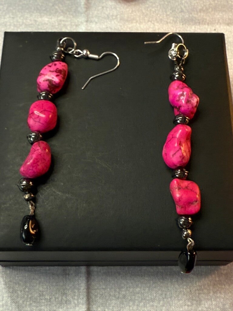 Coordinating pink stone earrings with black accent beads