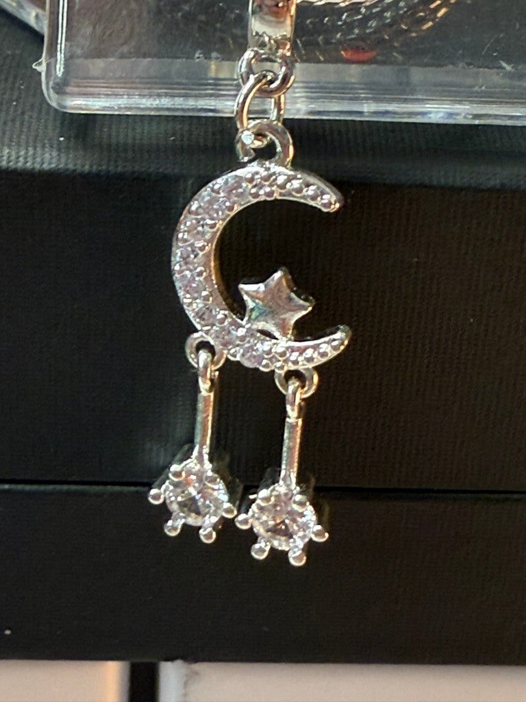 Crescent moon and star charm with crystal accents